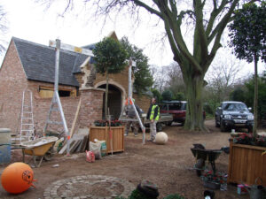 2016-18 saw the construction of a new Garden Room, between the house and Main Street. As with the greenhouse we employed builders to do the foundations and walls, but we did all the woodwork and glasswork ourselves, including the roof. Which is why it took 2 years. A neighbour asked Sarah ‘Are you having trouble with your builder?’ The reply, of course, was ‘Oh yes, endless…’.