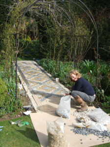 In 2010 we added a pebble mosaic path leading to the orchard, and beehives in the orchard. We now have four beehives – of traditional design, painted in Farrow & Ball colours! They are reasonably ‘friendly’ bees and no visitor has yet been stung to our knowledge, but if you are allergic to bees you might wish to avoid the orchard.