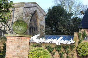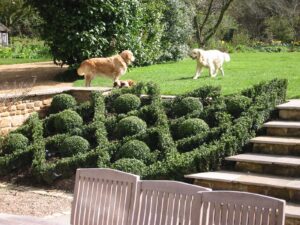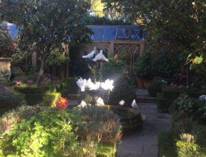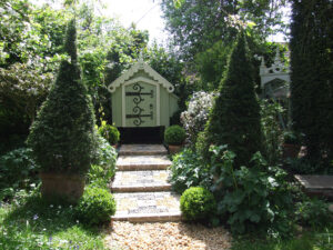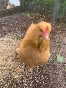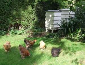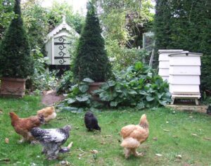 Pecking'em Palace. Modest hen coop gateway to the right.