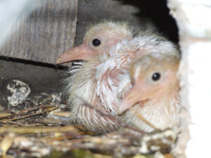 Baby doves (a.k.a. 'dinosaurs'. Not as pretty as hen chicks)