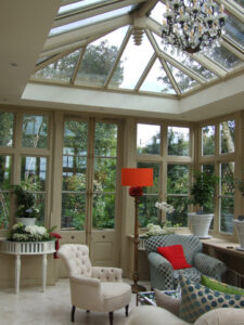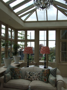 Inside the Garden Room, looking towards the garden.